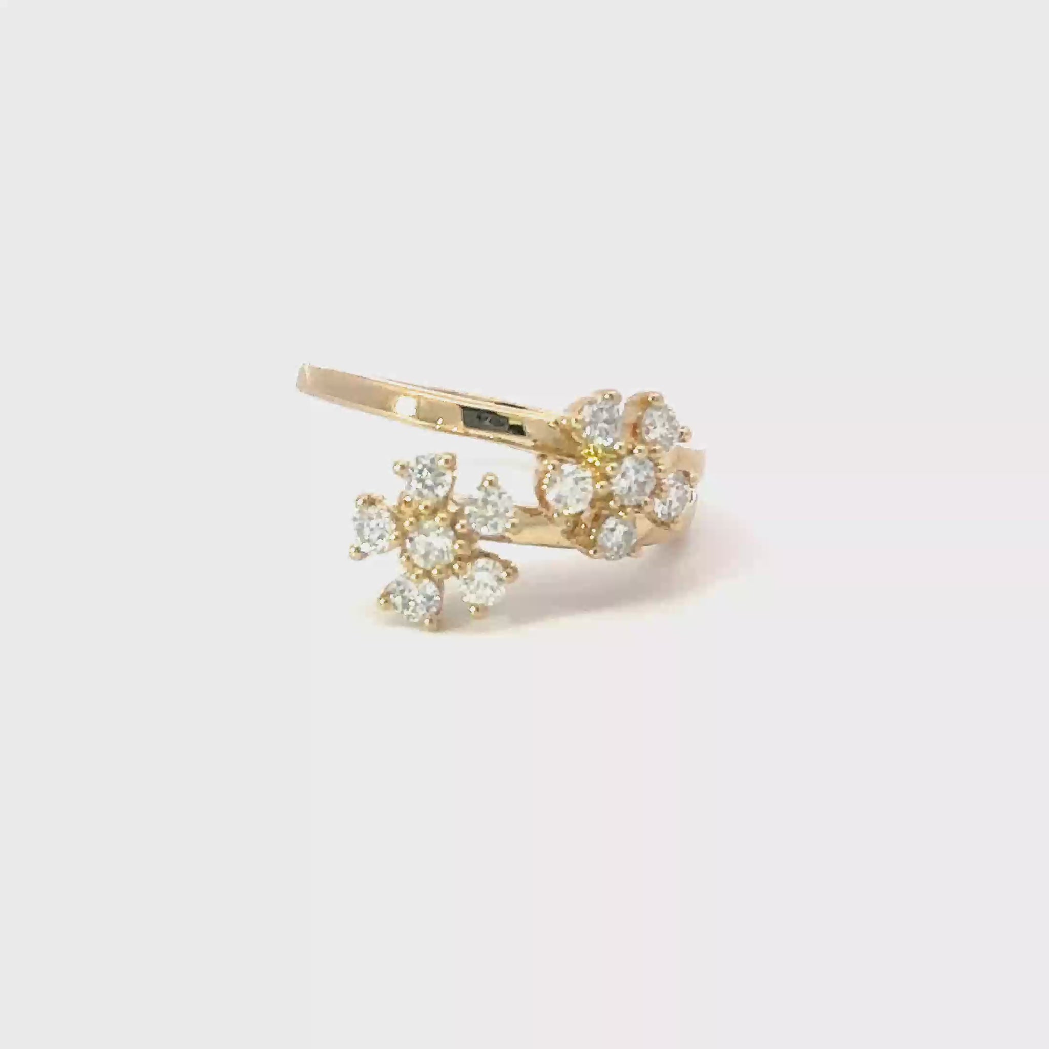 This elegant dainty ring features a total of 0.69ct of diamonds. The diamonds are set in a delicate floral pattern. This ring is perfect for a wedding band or an engagement ring. It is made of 14K white gold and is also available in yellow gold. The ring is available in any size and any finger size.