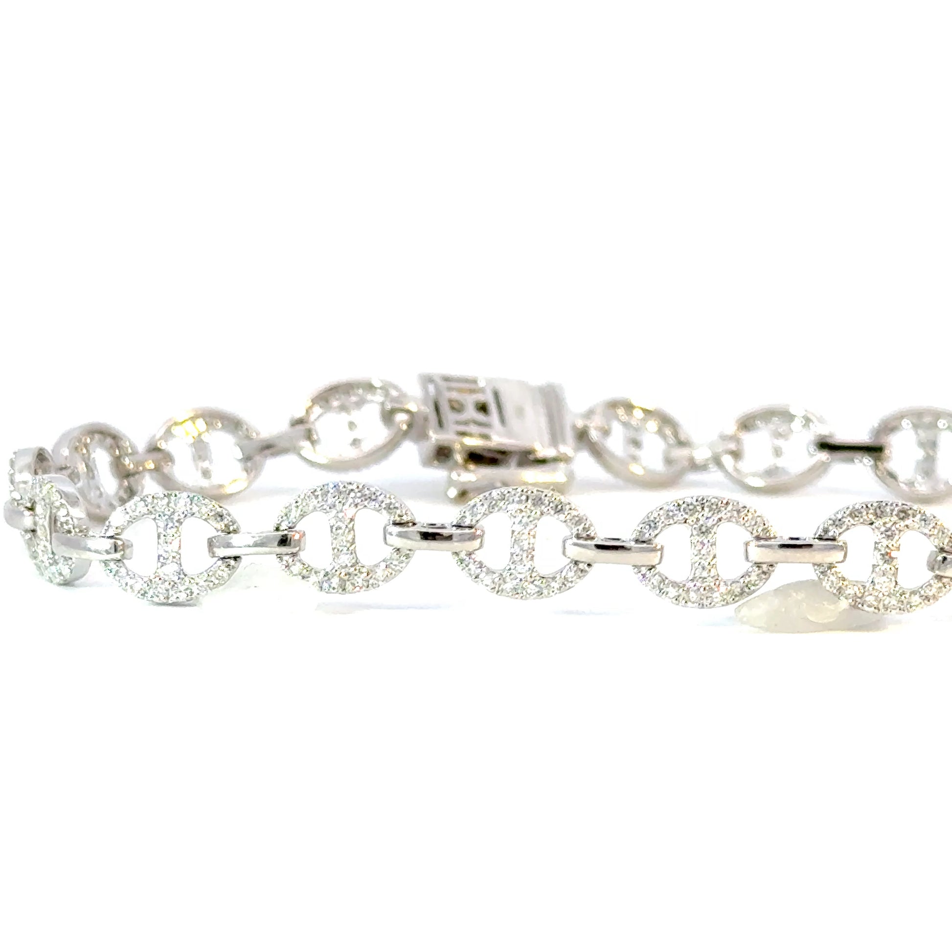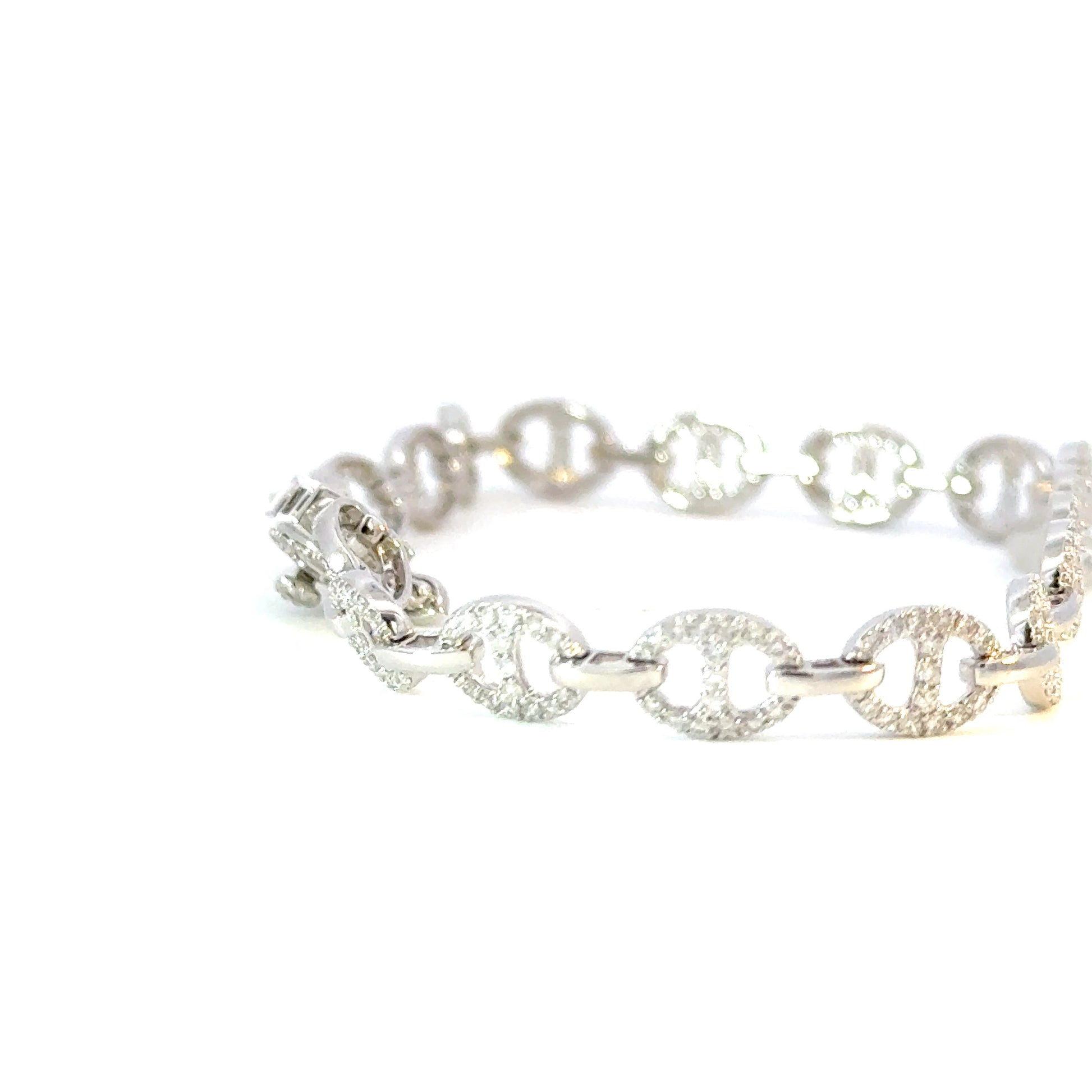 This exquisite 18K gold bracelet features a series of interlocking links, each adorned with shimmering diamonds totaling 1.99 carats. The luxurious design and intricate craftsmanship make it a perfect accessory for any sophisticated occasion.