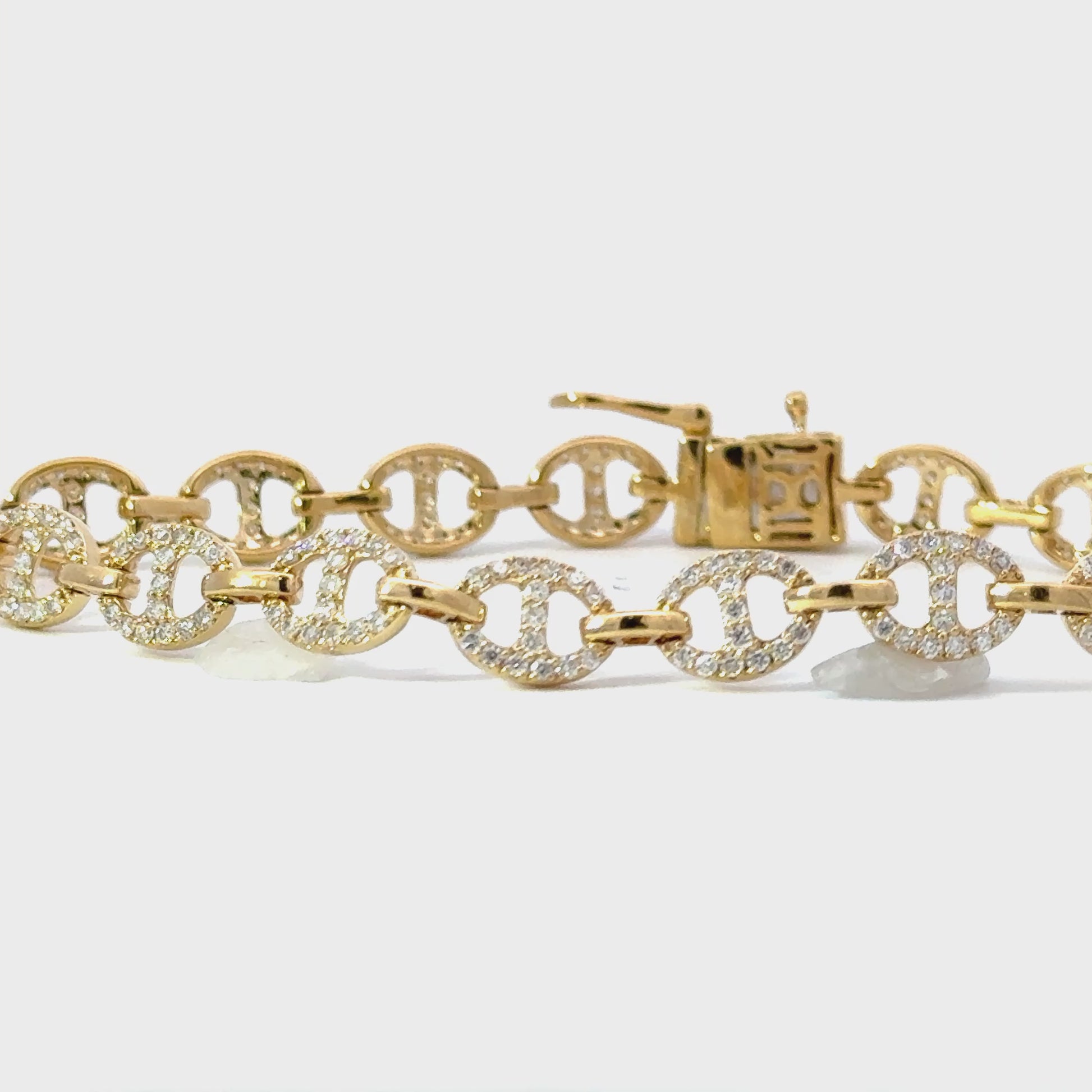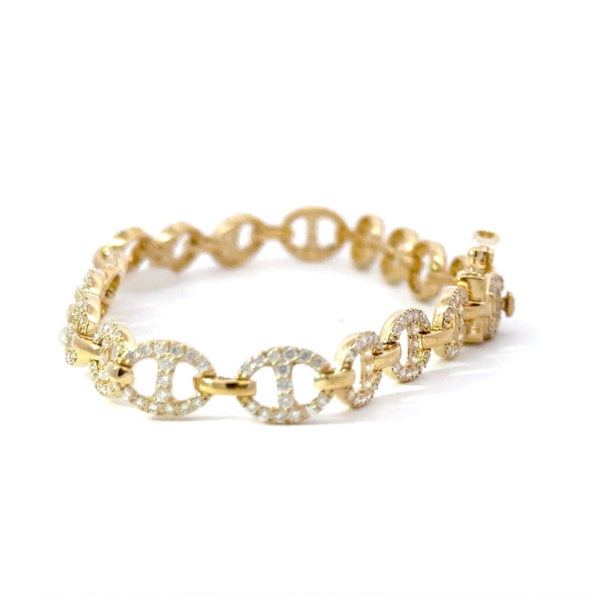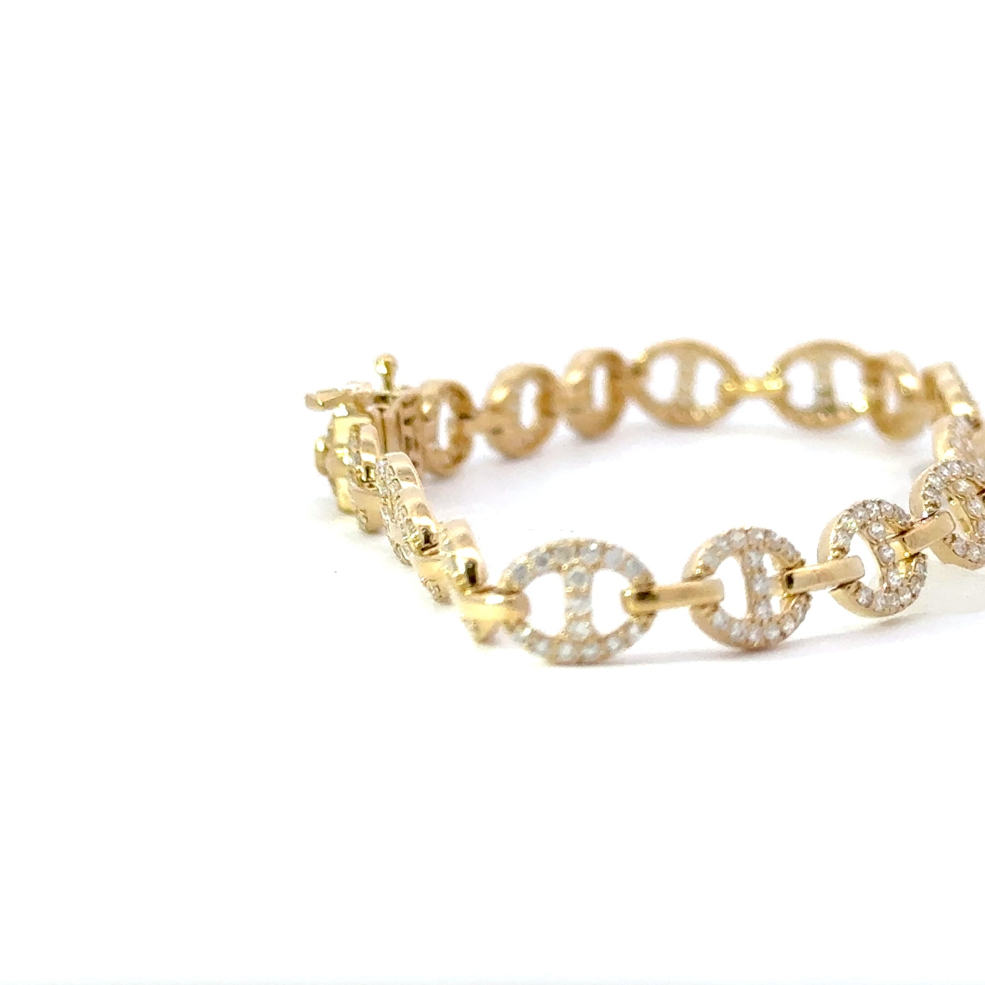 This exquisite 18K gold bracelet features a series of interlocking links, each adorned with shimmering diamonds totaling 1.99 carats. The luxurious design and intricate craftsmanship make it a perfect accessory for any sophisticated occasion.