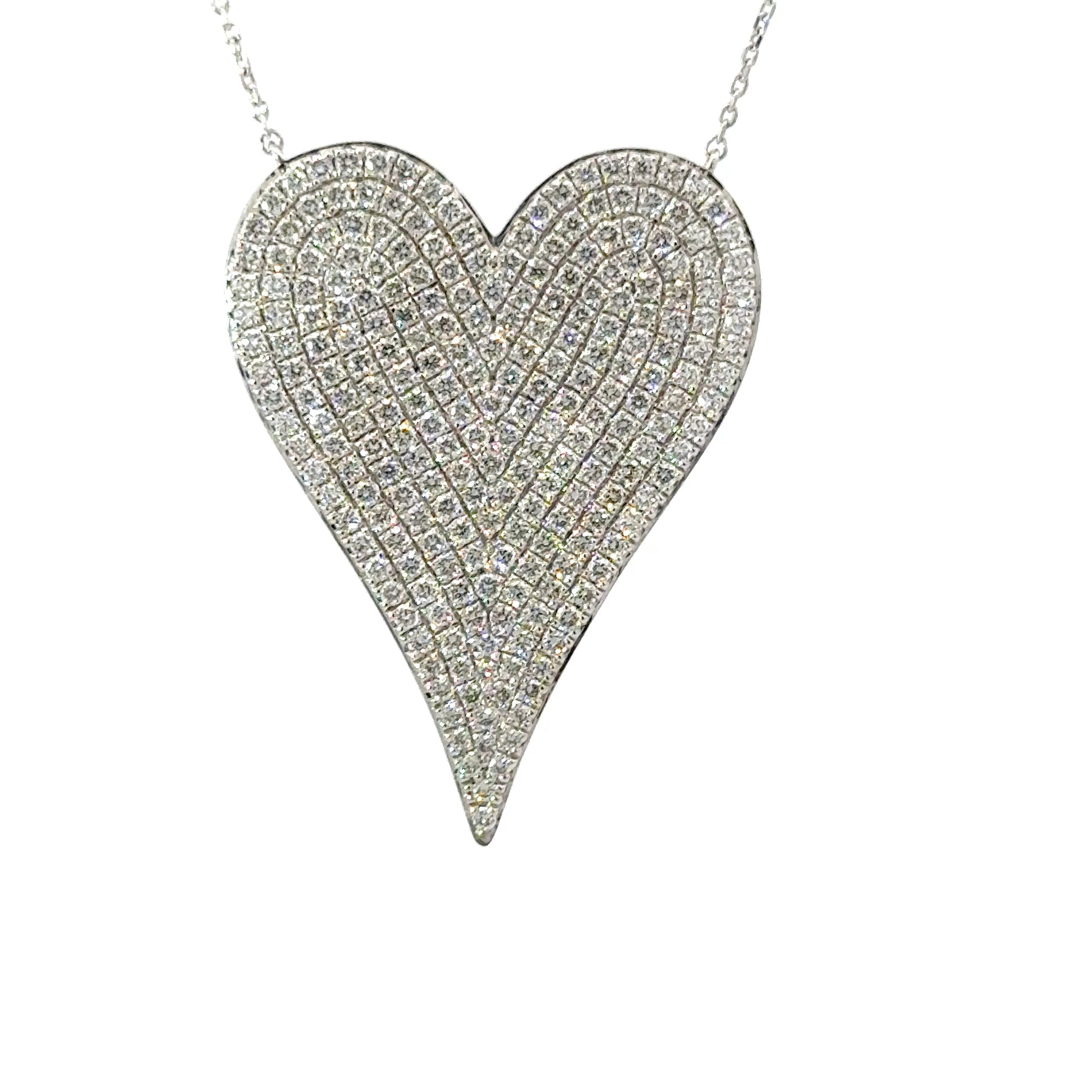 Radiate charm and elegance with this heart pendant necklace, featuring a breathtaking array of natural diamonds totaling 2.31 carats. The necklace's unique design and brilliant shine make it a standout piece, perfect for elevating any outfit. Whether for a romantic evening or a formal event, this necklace is sure to impress. Made in 18K white gold on a 18" chain.
