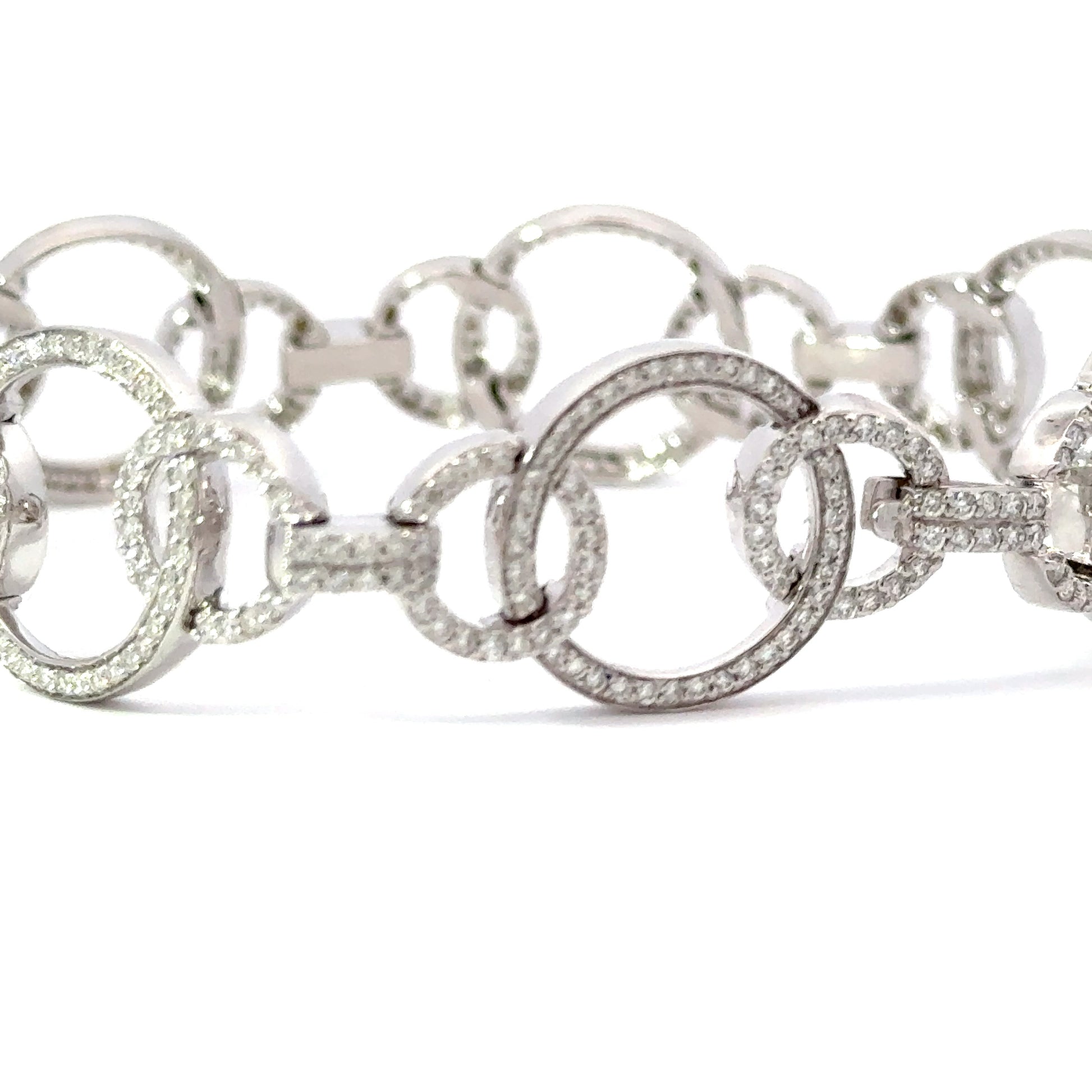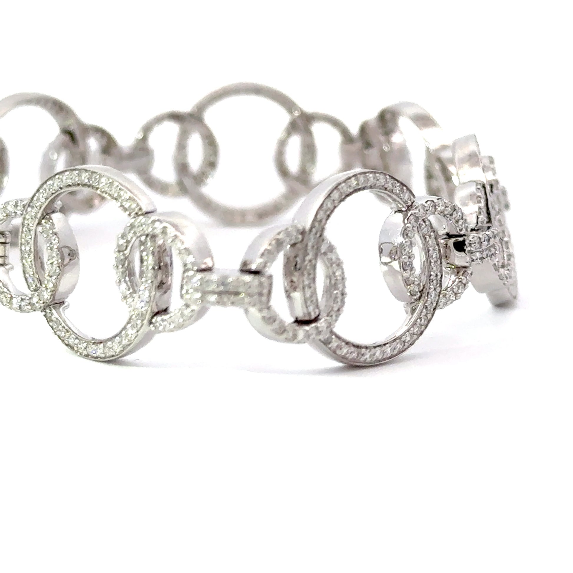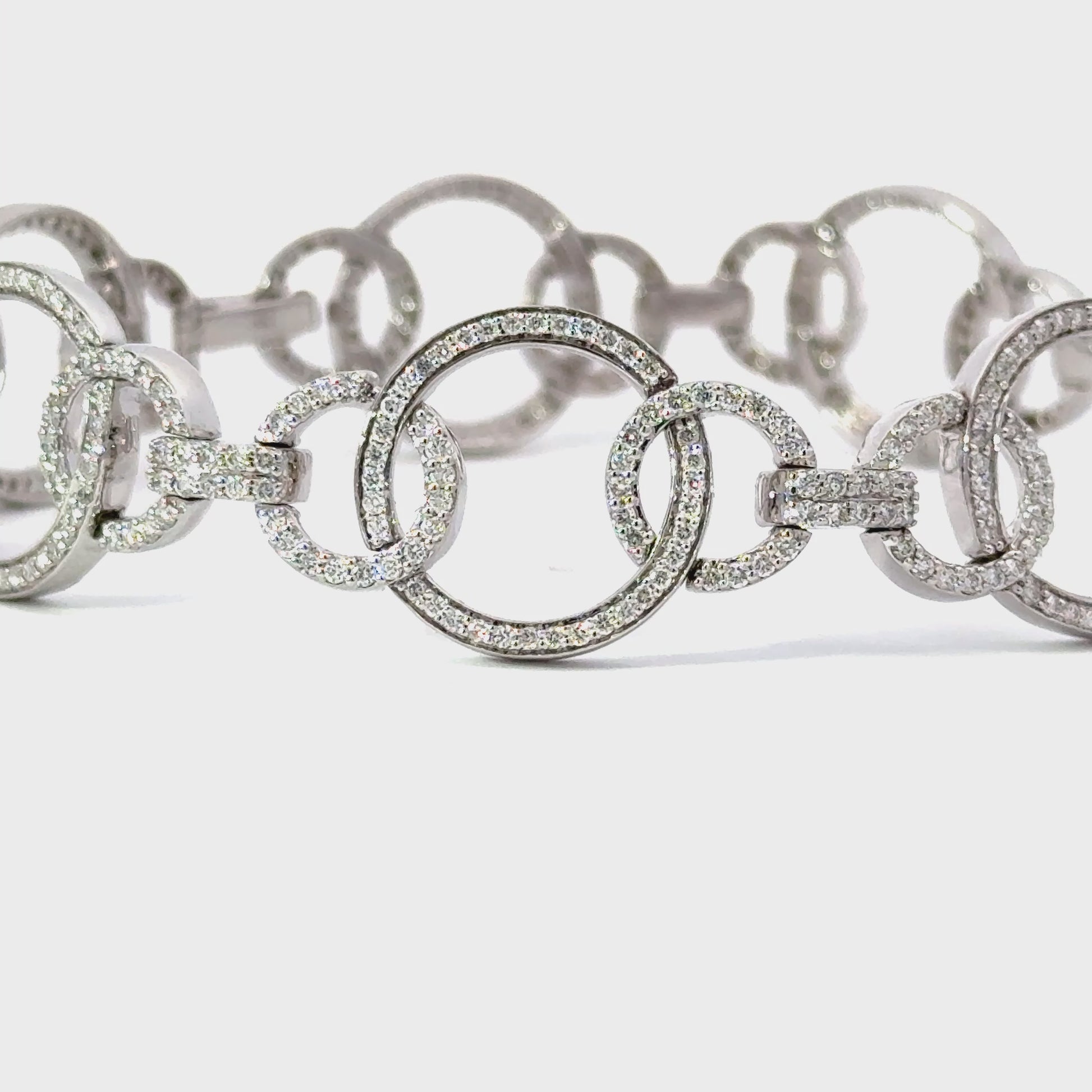 This exquisite bracelet features interlocking circles encrusted with Natural sparkling diamonds total weight 3.61 carats, creating a timeless and elegant piece that shines with every movement. Perfect for adding a touch of sophistication to any outfit. Made with 18K white gold.