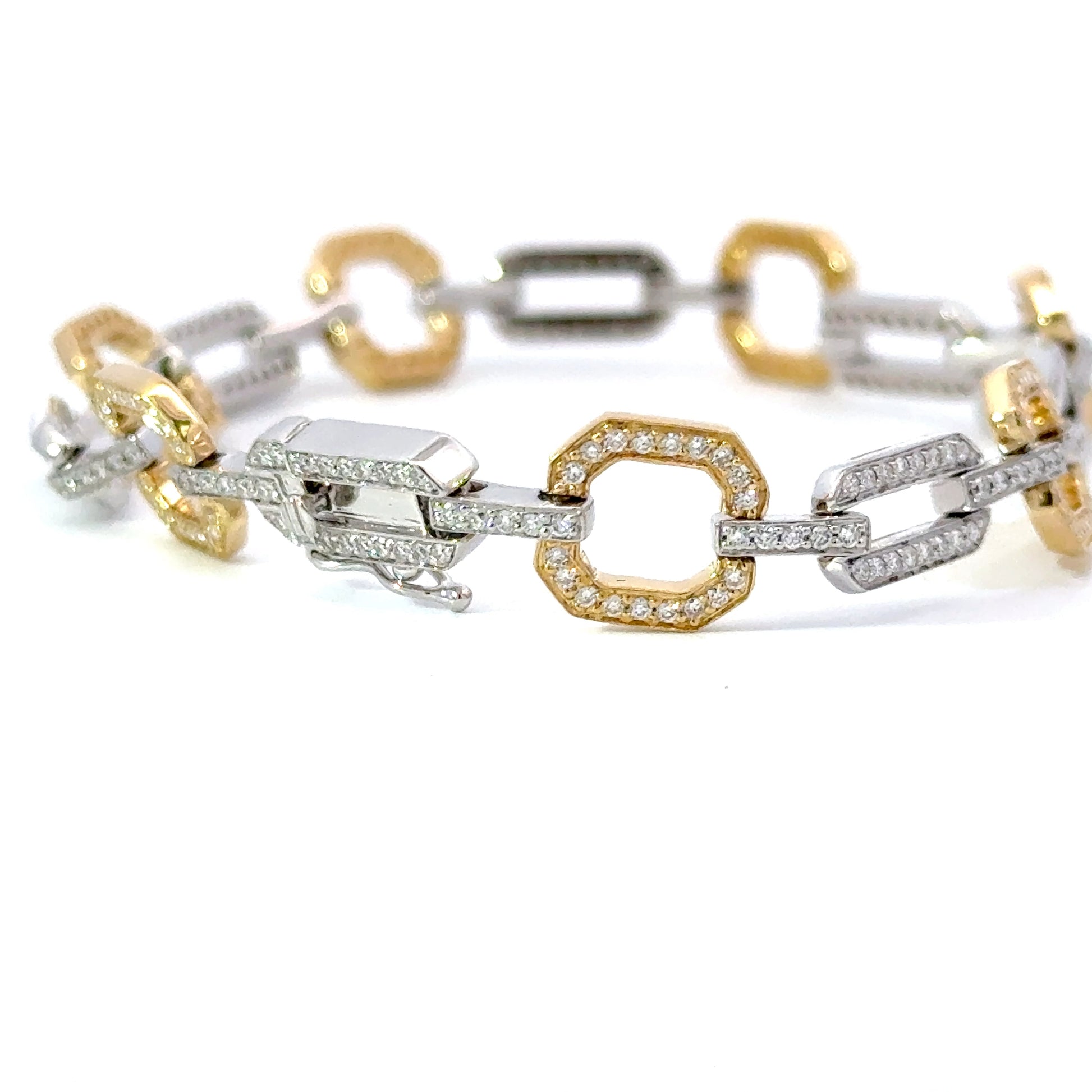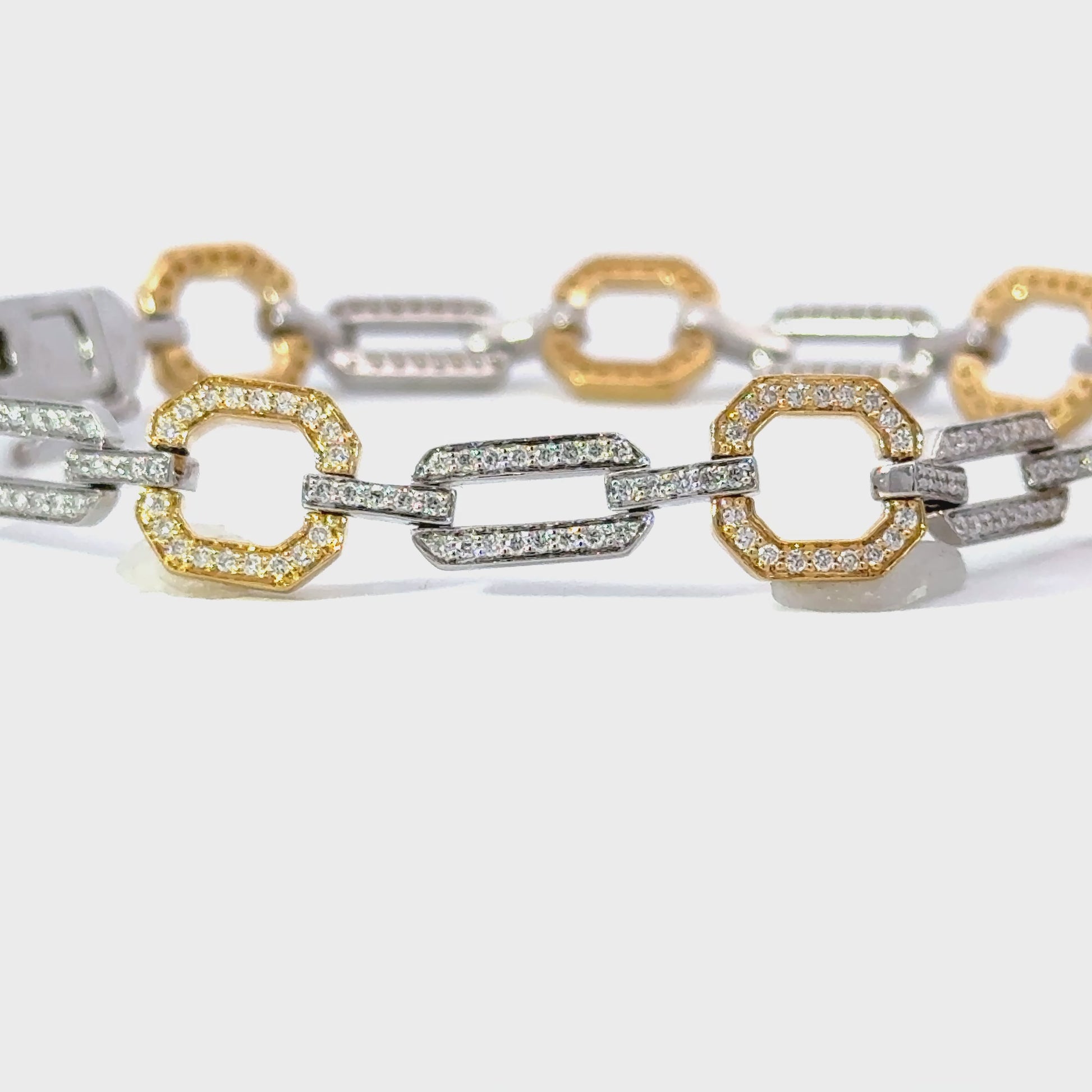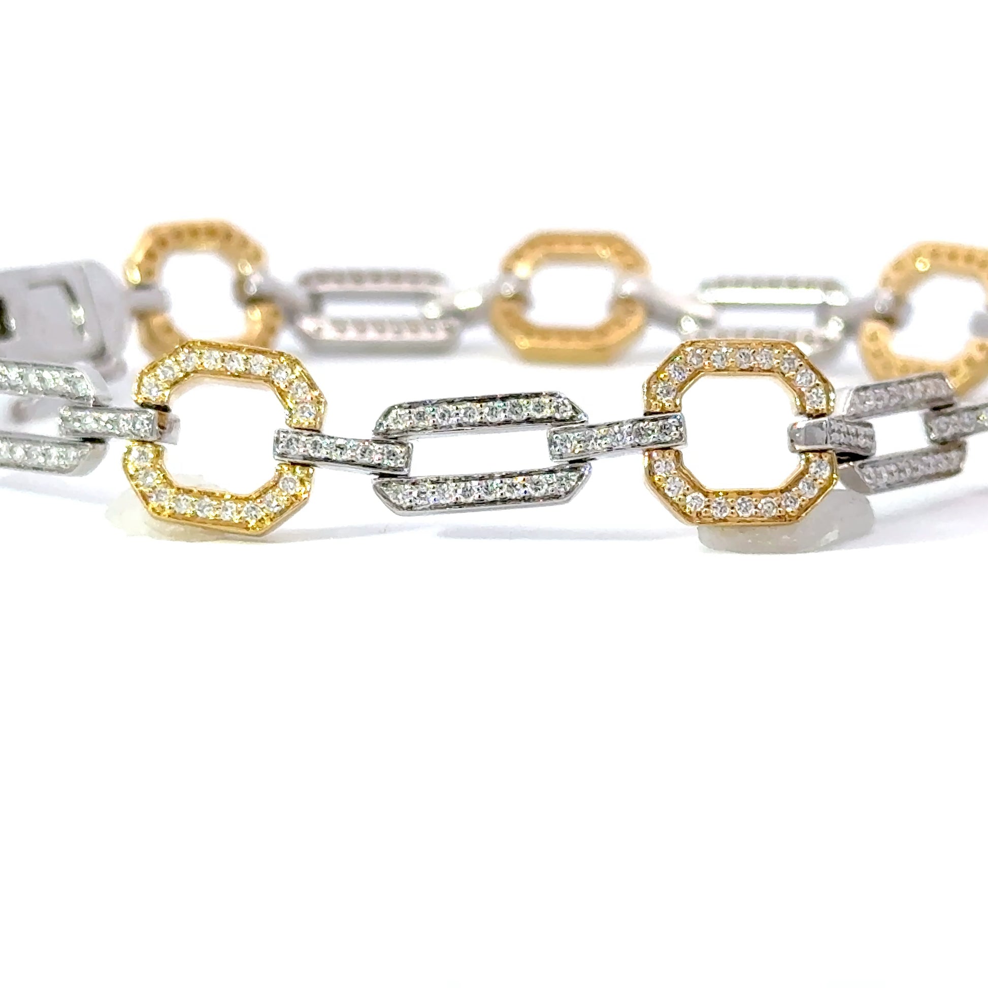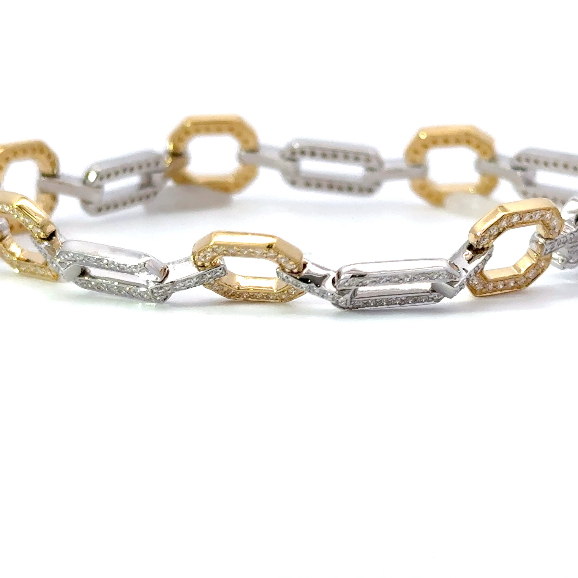 Elegant Two-Tone Links of Natural diamonds Bracelet