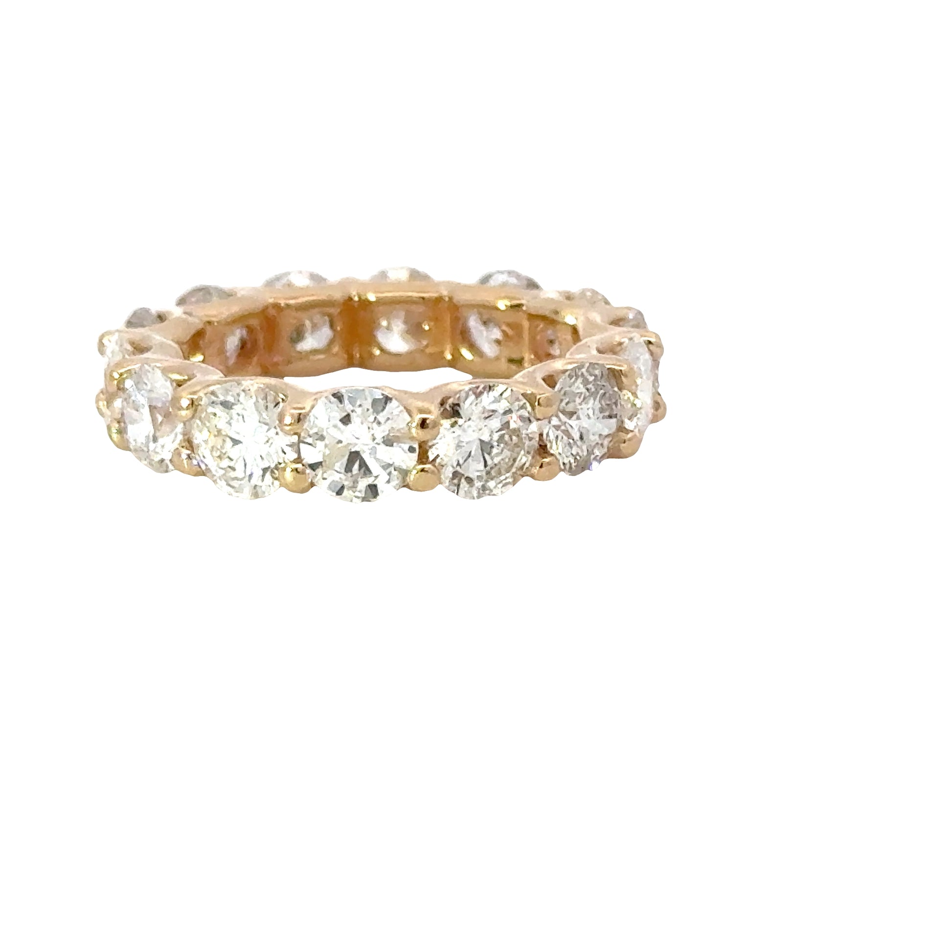 Dazzle with this exquisite 14K yellow gold eternity ring, showcasing a continuous row of natural round brilliant cut diamonds total weight 7.05 carats. The classic design and exceptional craftsmanship make it a timeless piece, perfect for symbolizing enduring love and commitment. Each diamond is meticulously set to maximize brilliance and sparkle, creating a stunning display of light.