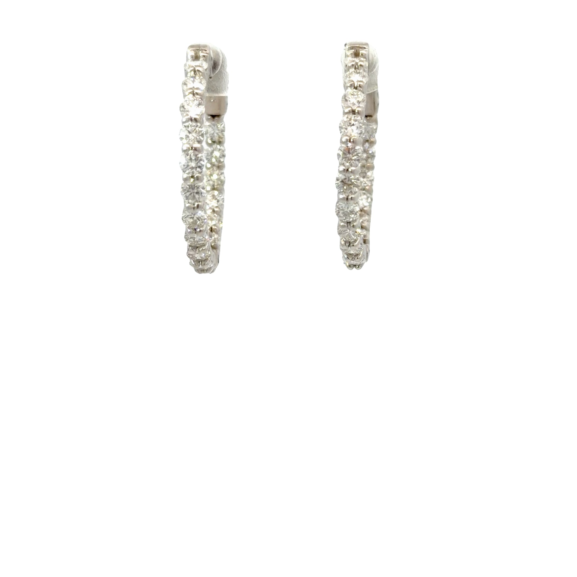 White Gold Hoop Earrings with Round Cut Diamonds